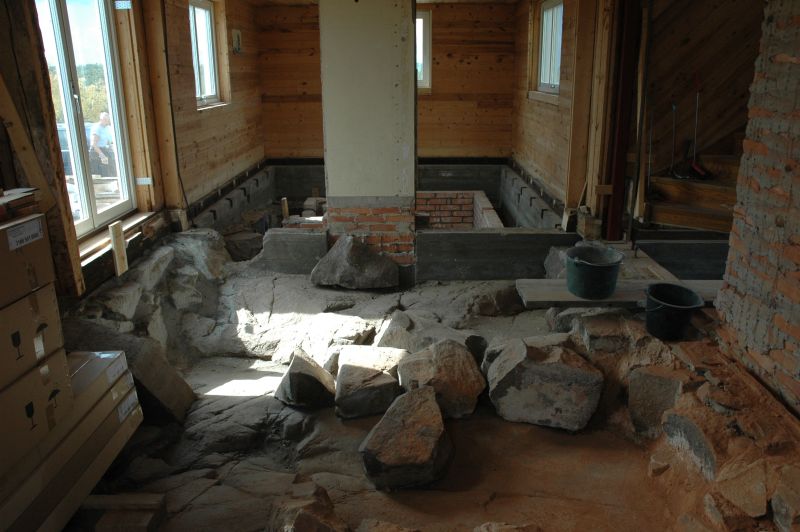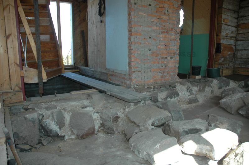 Södra sockeln i gamla stugan (med provisorisk fästbräda för laser).