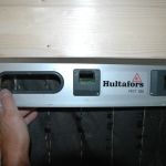 Det är många vinklar och lutningar i stugtaket. Här är vägg-gipsen och en del av takpanelen på plats.