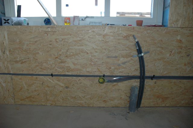 Uttag för diskmaskin. Upp ut golvet kommer VA för diskbänk och diskmaskin.