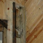 Den bärande väggen mellan torn och stuga var kraftigt fuktskadad och behövde ersättas. Egentligen var det två ytterväggar som byggts ihop med 5 cm isolering emellan. Isoleringen behöll effektivt all fukt. Likaså hade det tidigare läckande stugtaket bara lagats hjälpligt, så det läckte alltjämt. Resultatet behöver ingen närmare beskrivning.