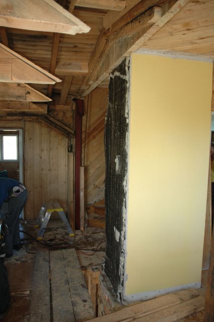I bakgrunden syns en av de nya stolparna på plats. Totalt var de över 5 m långa, så det var lite trixigt att få dem på plats.